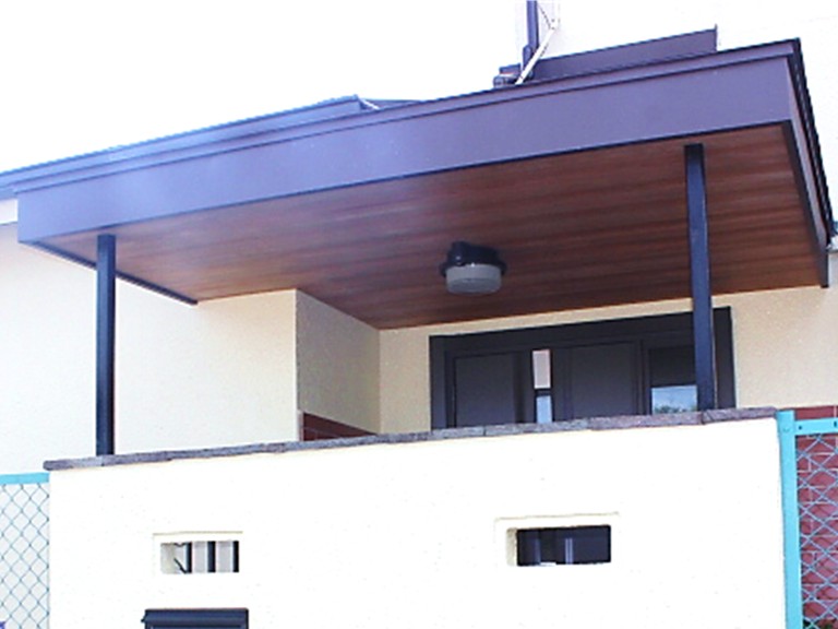 忠岡町で玄関ポーチの軒天に無垢材を張り屋根にガルバリウム鋼板を施工!約30万円(工期 8日)