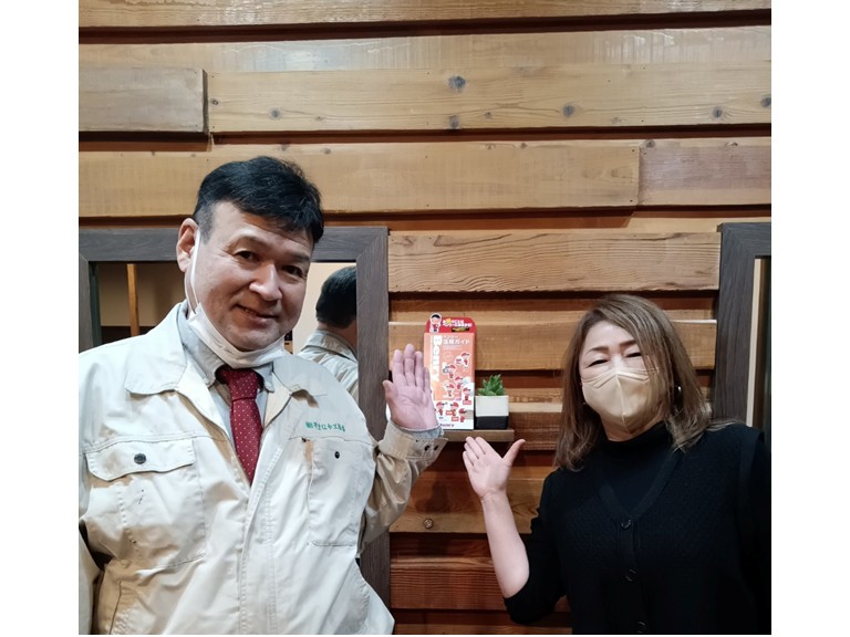 阪南市でトイレの換気扇の取替工事を行ったA様との記念写真を撮影