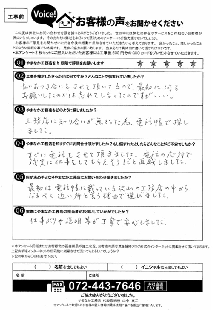 泉大津市でトイレのドアのレバーハンドルの交換を行ったK様の声