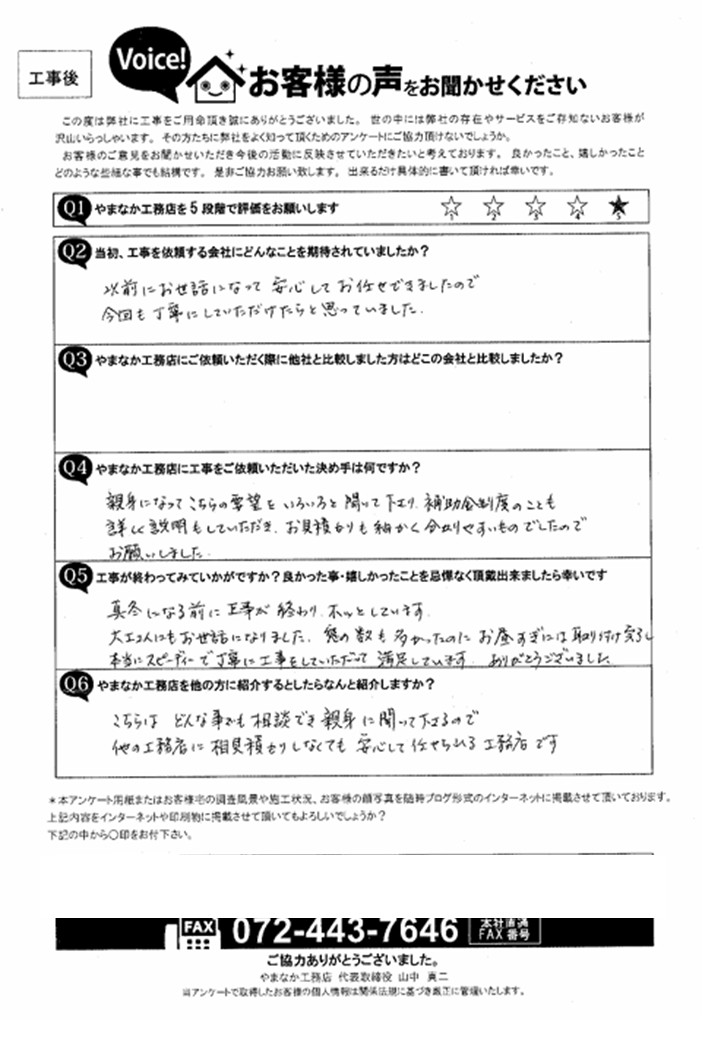 和泉市で13か所の窓に内窓を設置したF様の声をご紹介