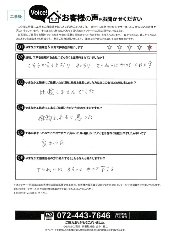Q6.実際にやまなか工務店の担当者がお伺いしていかがでしたか?