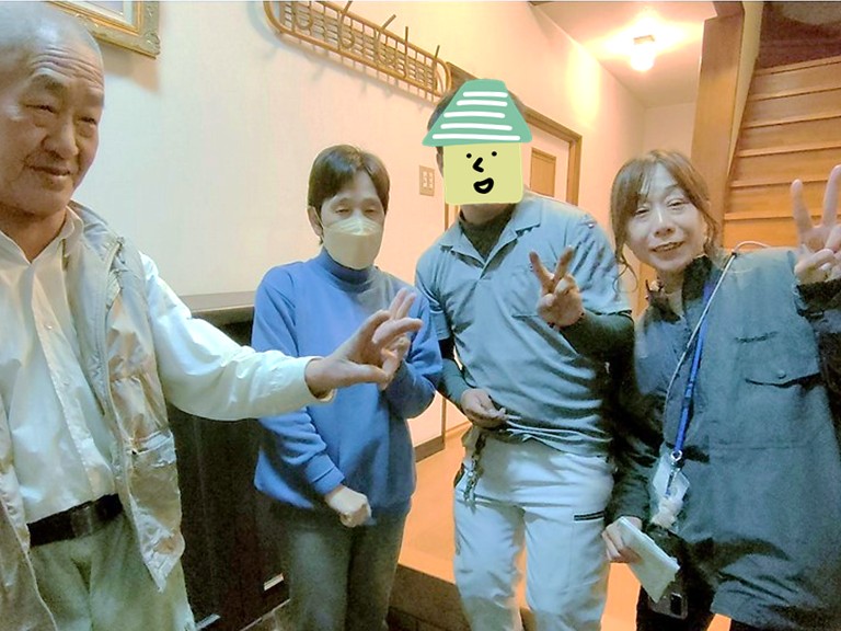 阪南市で雨漏り修繕のため矢切に水切りを取り付けたK様との記念写真