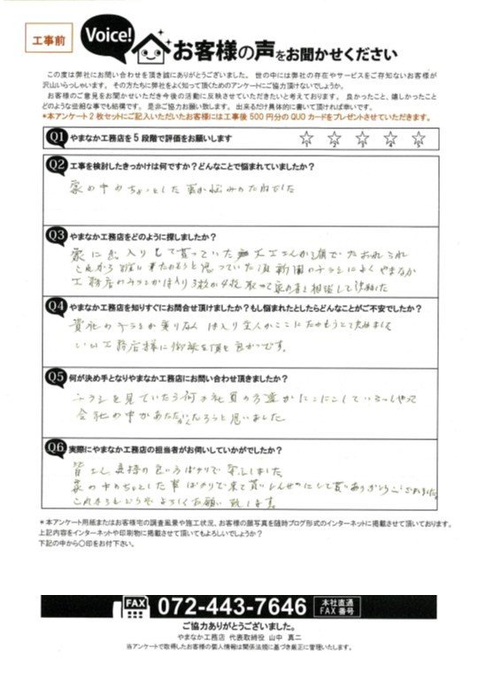 岸和田市で玄関ホール・廊下の床改修工事を行ったO様の声