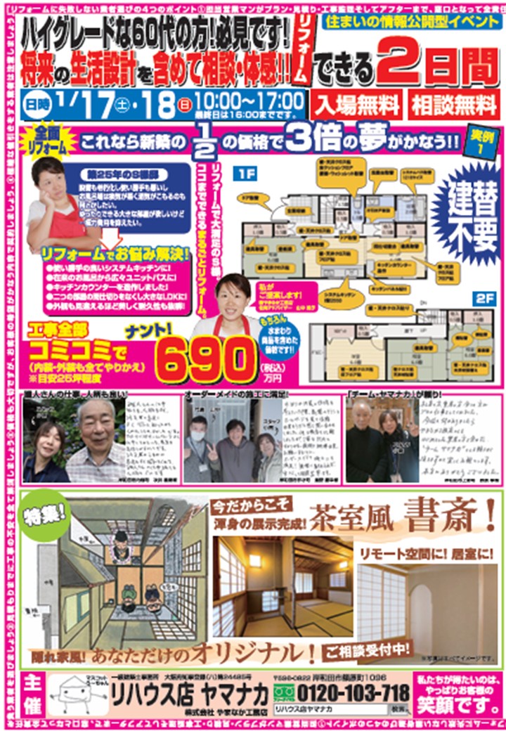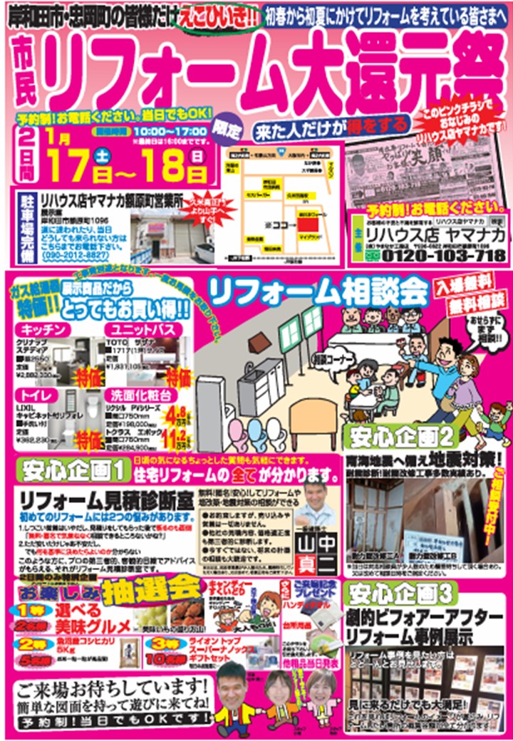 2026./1.17(土)1/18(日)市民リフォーム大還元祭・リハウス店ヤマナカ 額原倉庫2階展示室で 開催!