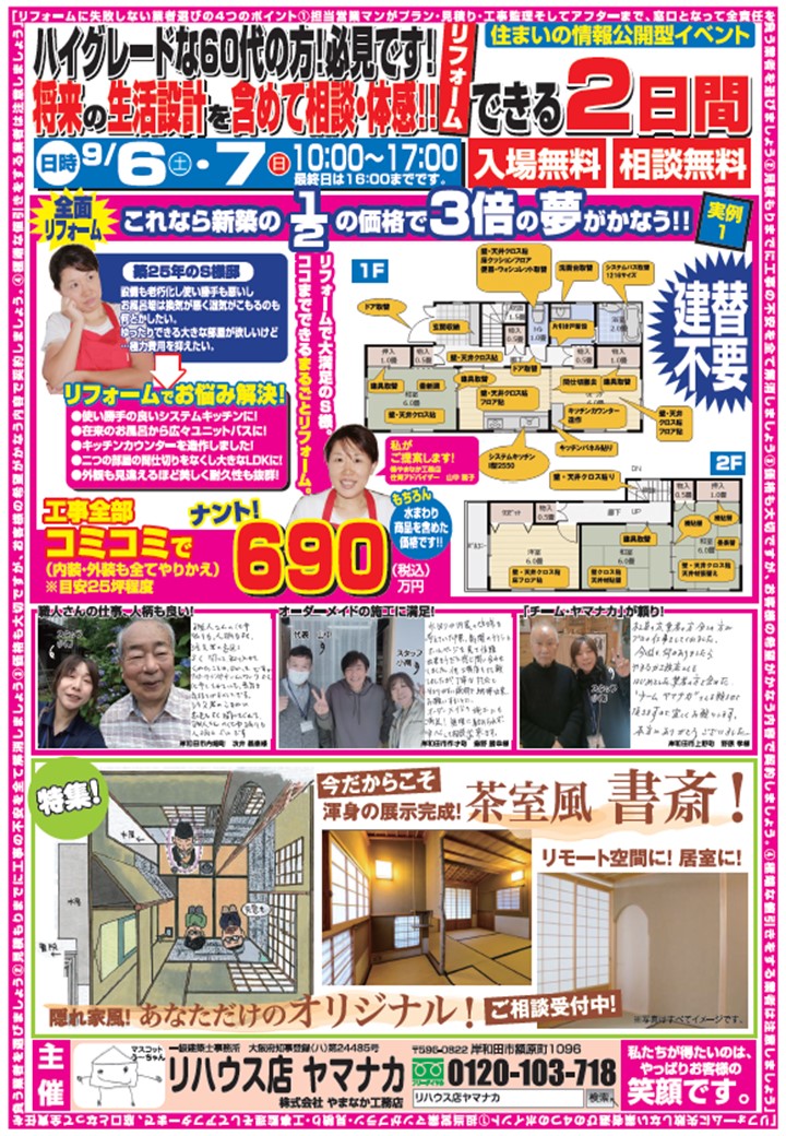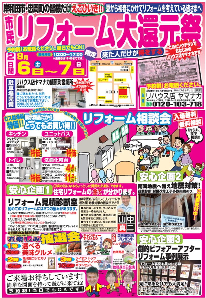 2025./9.6(土)9/7(日)市民リフォーム大還元祭・リハウス店ヤマナカ 額原倉庫2階展示室で 開催!