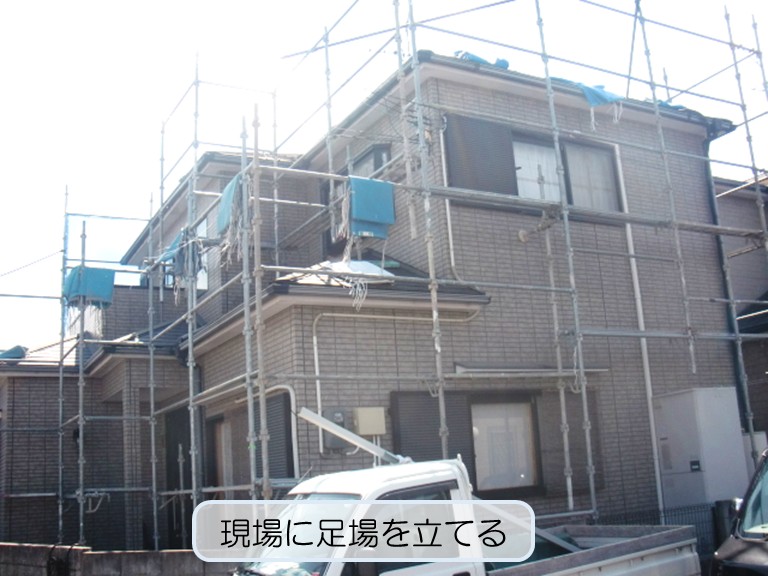 和泉市の2階建てで足場工事完了!仮設工事で塗装準備スタート