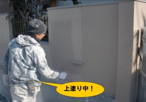 前日の工事で、塀の中塗りが終わりました。本日は上塗りです。