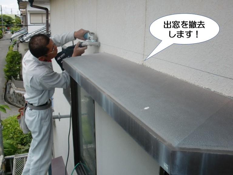 N様邸は2階に出窓があり、台風21号の強風で窓が割れるのでは、と心配だったそうです。台風の時に雨戸を閉めれるように、出窓を引き違い窓に入替えることになりました。