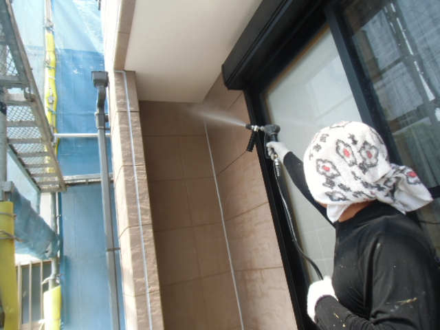 外壁塗装での水洗い(高圧洗浄の)処理 岸和田市加守町