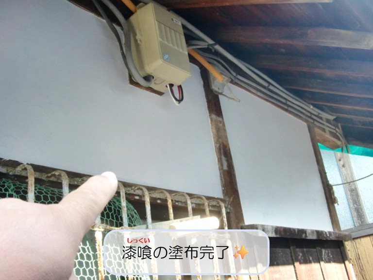 風災にあった阪南市Y様邸の門長屋の反対側の外壁にも漆喰を塗っていきます