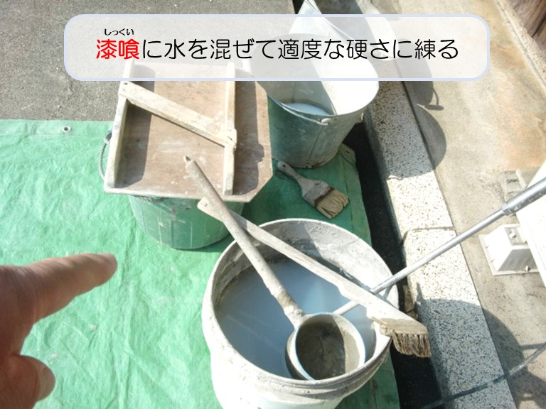 漆喰が柔らかすぎると外壁にうまく塗れませんし、硬すぎても綺麗に仕上がりません。