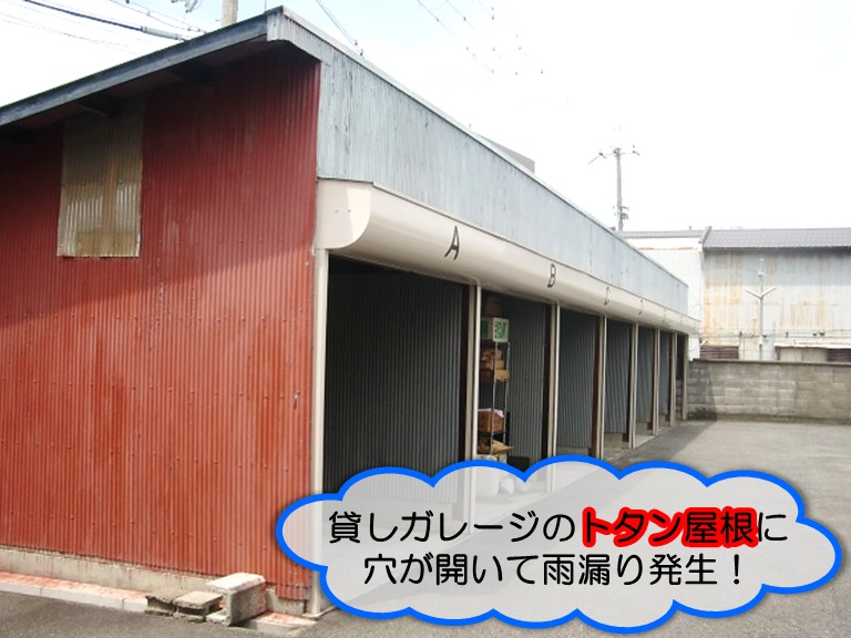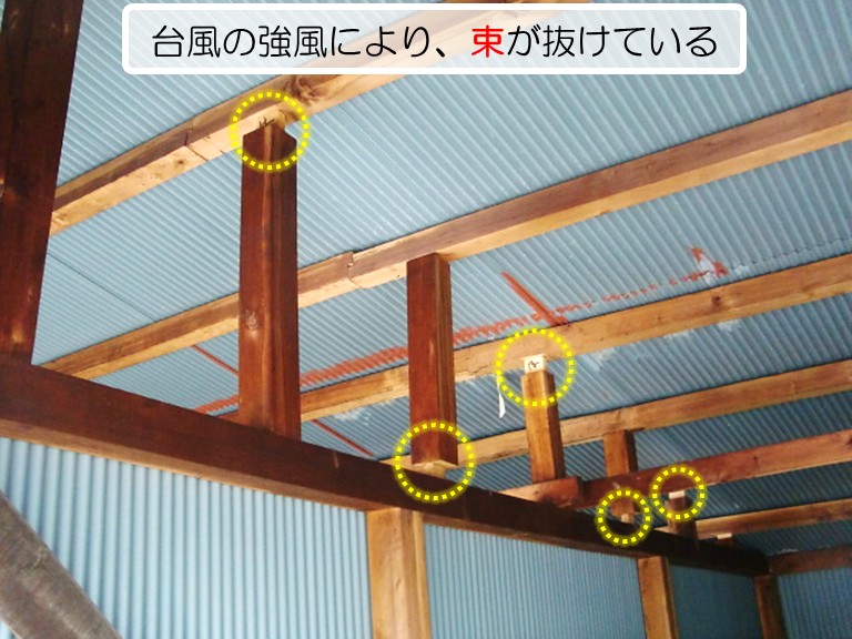阪南市で錆びて穴が開いたトタン屋根が台風による強風で浮いていました