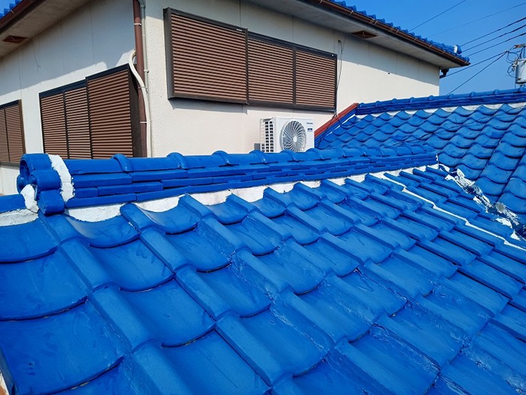 屋根の一部を葺き替え(古い屋根材を新しいものに取り替える工事)て、棟の積み直し(屋根の頂上部分を解体して積み直す工事)をして、雨漏りを修繕しました✨