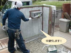 写真は塀の内側の塗装で、下塗りを行っている様子です。下塗りはこの上に塗る塗料をしっかりとくっつける役割があります。