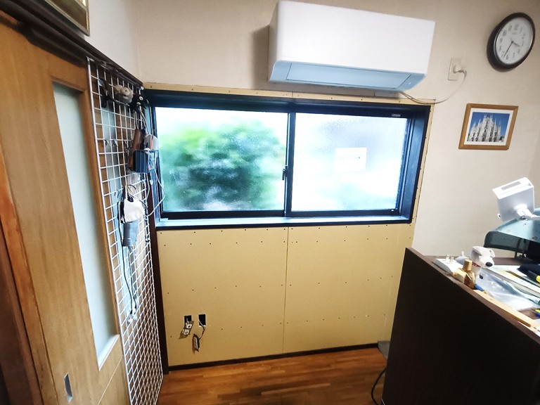 窓から壁になった部分は外からの見た目も大切に、外壁の修復塗装まで周囲に馴染むように丁寧に仕上げました。