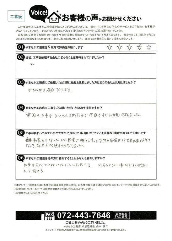 前回の工事が大変良かったので、今回もすぐお願い致しました。