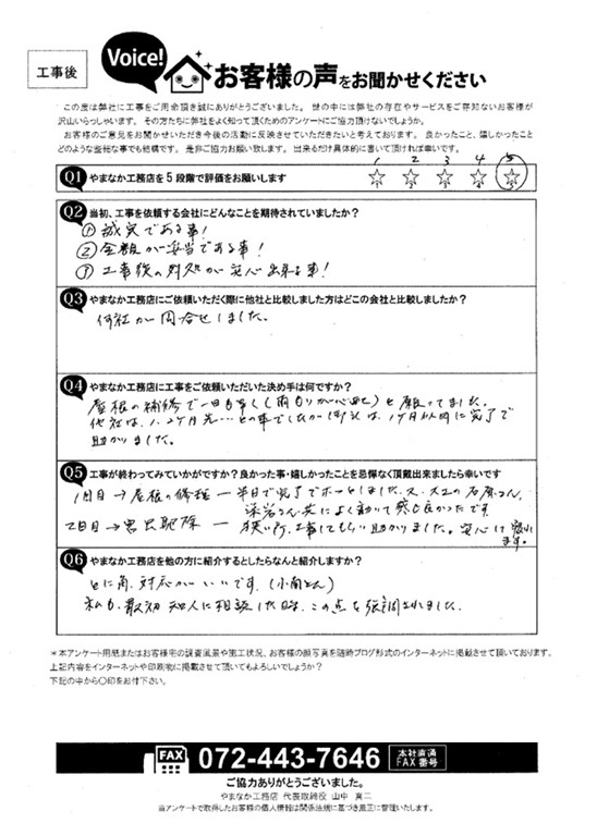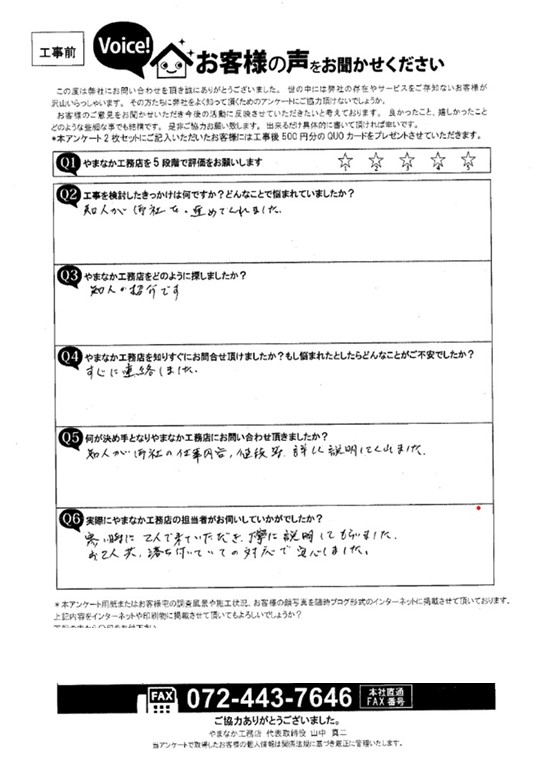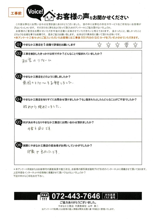 Q6.実際にやまなか工務店の担当者がお伺いしていかがでしたか?