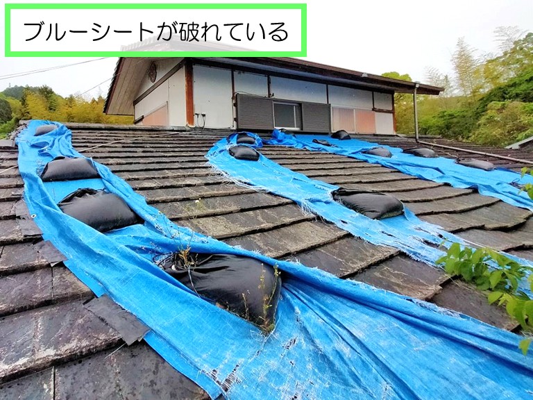 破れたブルーシートの状態