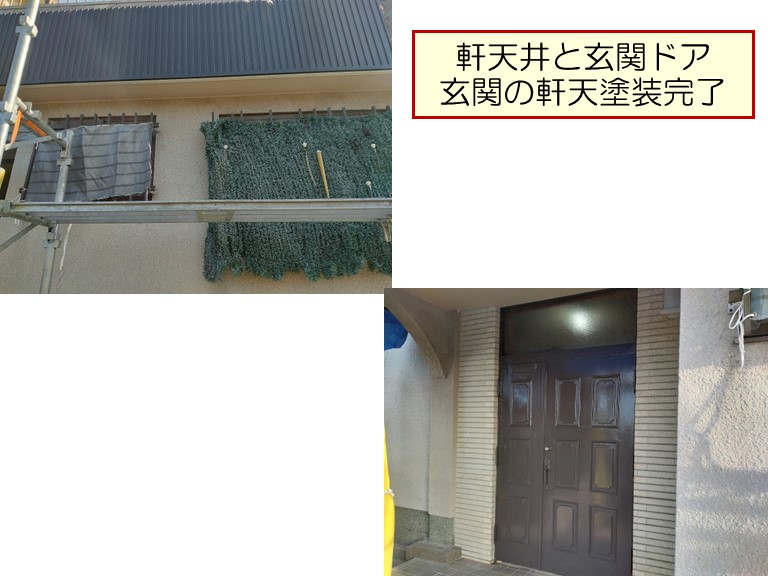 和泉市K様邸の軒天井と玄関ドアの塗装が完了しました。