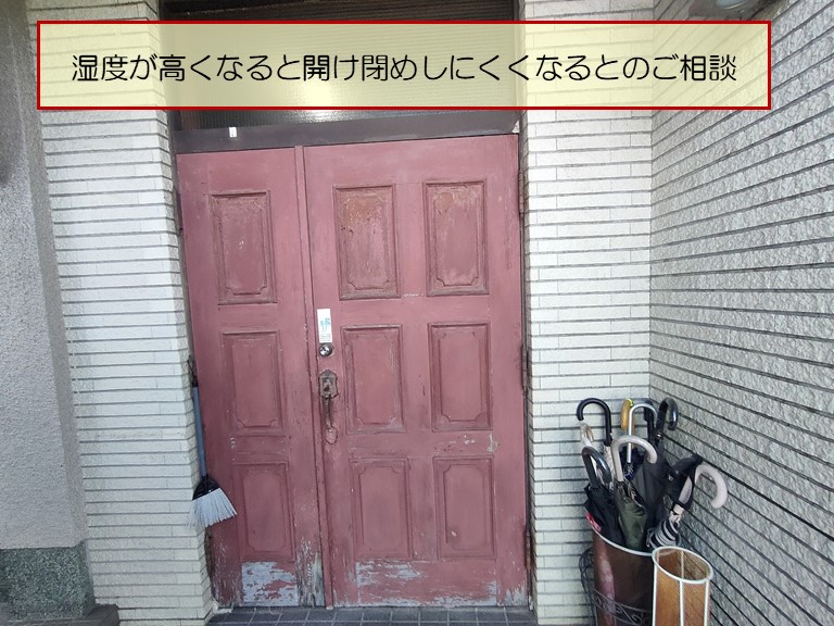 湿度が高くなると玄関ドアの開け閉めがしにくくなるんです・・・」とのご相談をいただきました。
