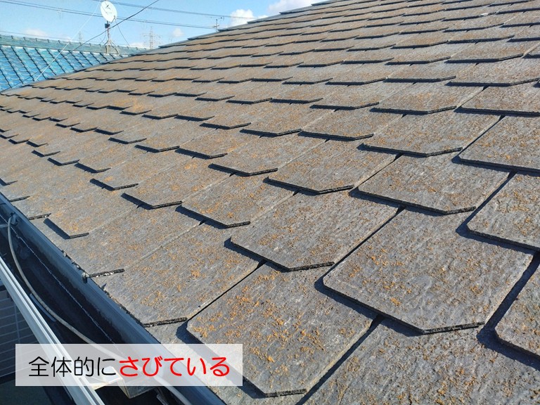 スレート屋根は表面のコーティングが傷むと、中の素材が水分を取り込んで錆が発生してしまいます。