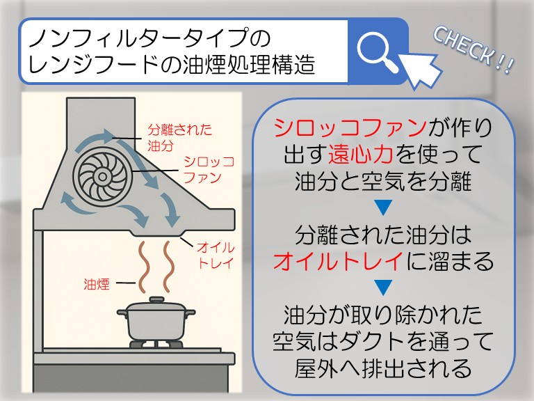 内部への油の侵入を防ぎ、レンジフード内部の汚れを軽減する役割
