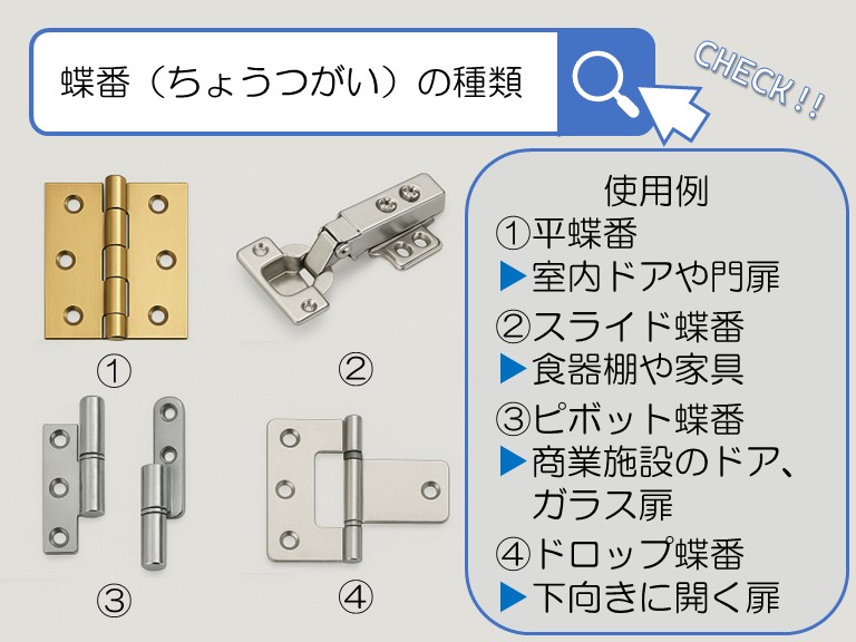 蝶番は一見すると地味な部品ですが、毎日の使い勝手に直結する大切なパーツです。