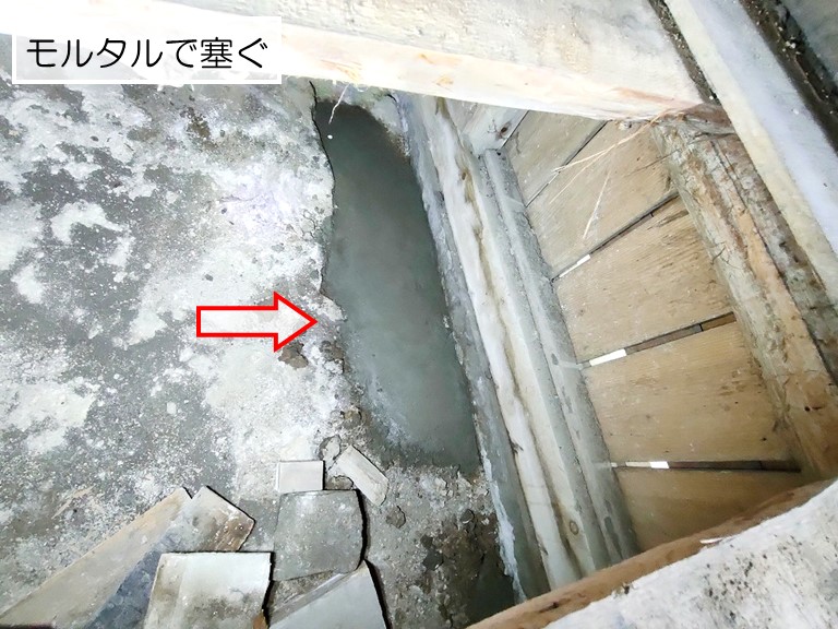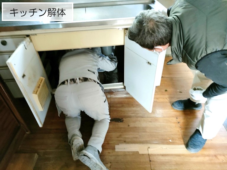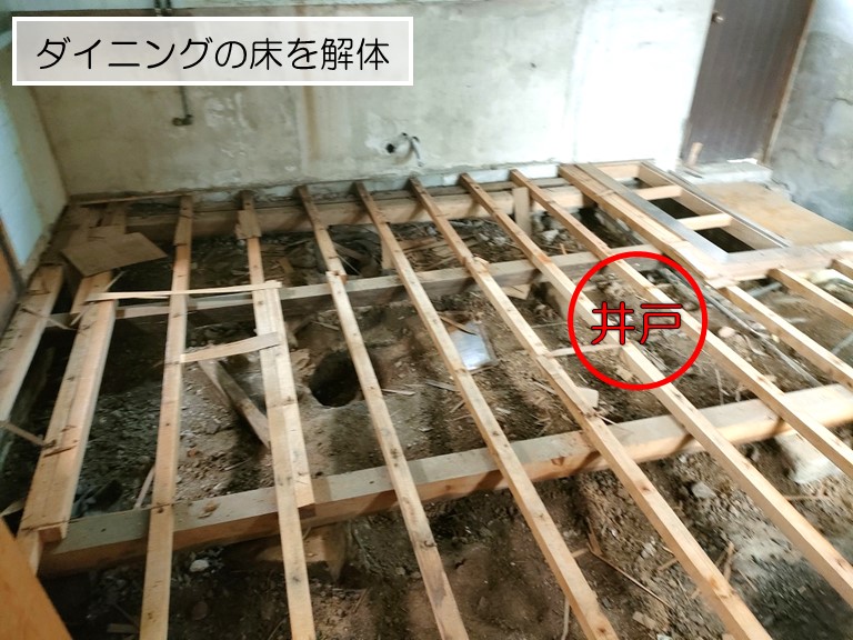 岸和田市でダイニングキッチンをリフォーム!床下に動物の穴発見!