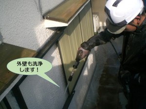 まずは、屋根から順に洗浄します。(汚れが下に流れるので上から洗わないといけません)
