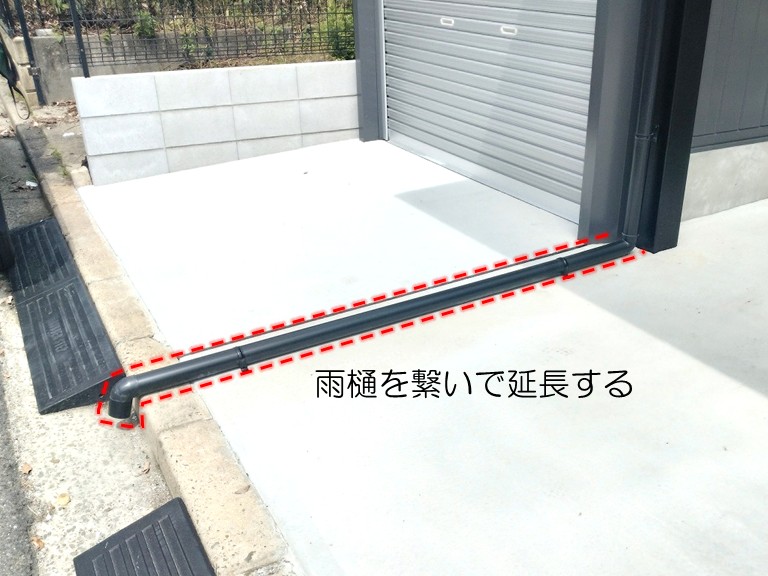 延長した樋が既存の雨樋とぴったり合わさり、雨水が上から下へスムーズに流れるラインができました。