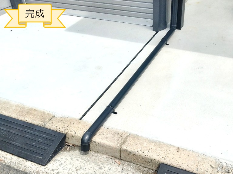延長された雨樋がカーポートにしっかりと馴染み、雨水がきちんと地面に導かれるようになりました。