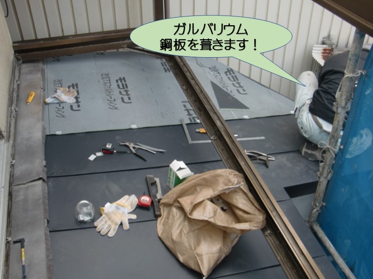 ベランダの下の屋根をガルバリウム鋼板平板葺きします! 4/2 岸和田市