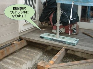 木製のデッキは傷むと腐食し、白蟻の被害に遭うこともあるので、長持ちする樹脂製に入替えます。今回、屋根や外壁をきれいに塗装し、サッシも入れ替えるので、古くなったデッキがきれいになると外観が一層美しく見えますね。