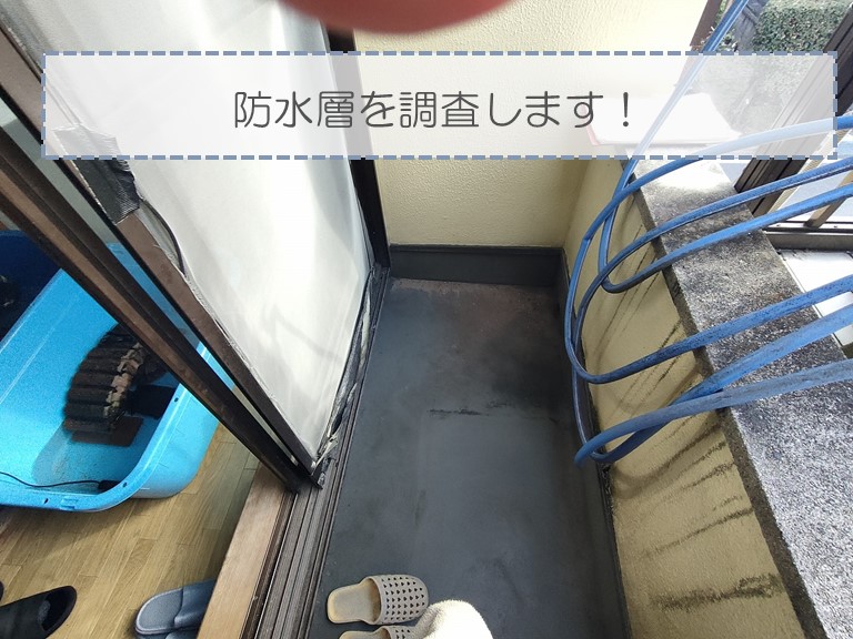 バルコニーの床に何か問題が無いか調べさせていただきました。