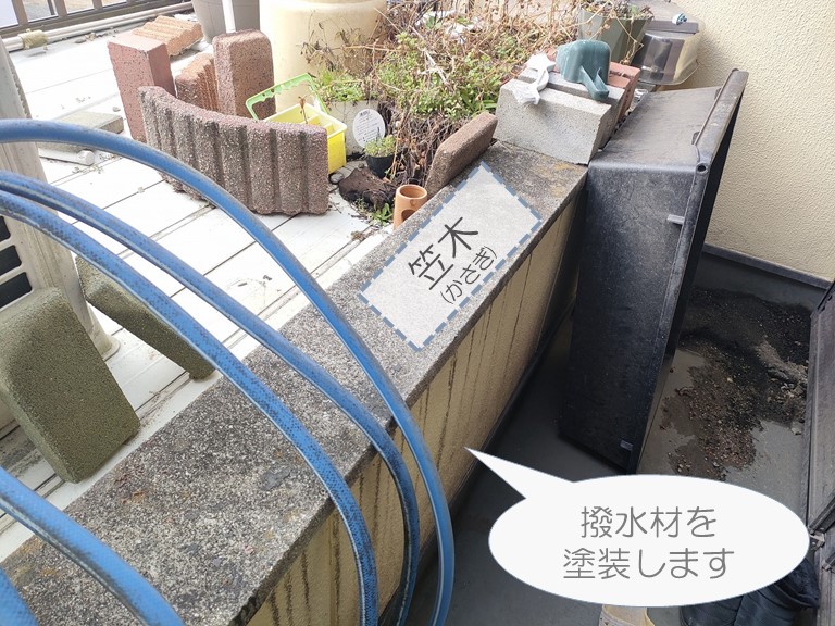 笠木の部分にも水性塗膜防水材を塗装してしっかりと防水します。