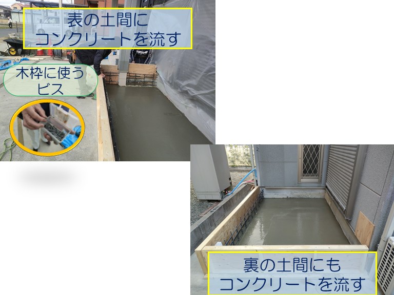 泉佐野市でお部屋の増築工事!土間打ちをしてコンクリートを流す