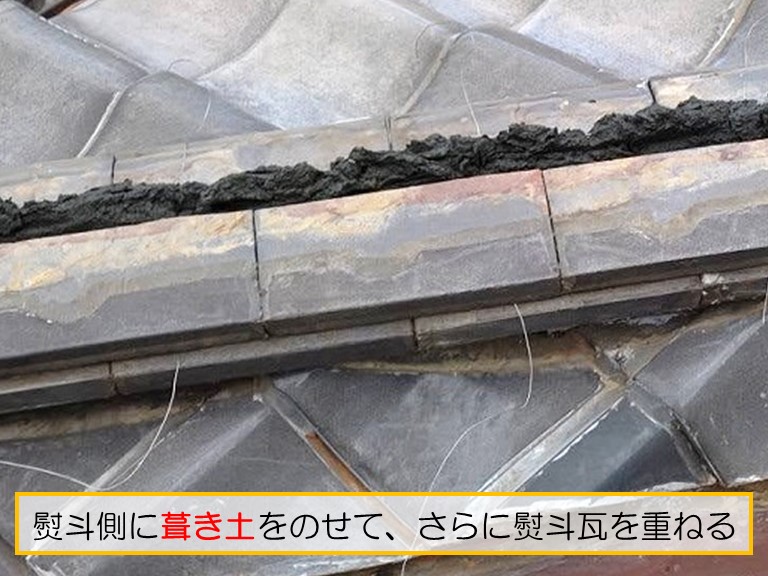 貝塚市で下屋の瓦に詰められたコーキングが原因で雨漏りが発生!