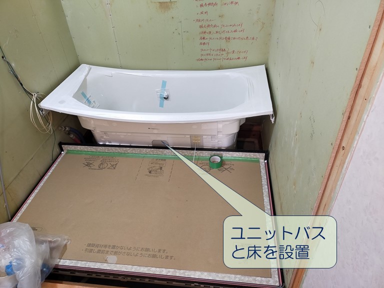 泉佐野市の浴室入替工事の様子-UB枠設置から洗面所床下地完成