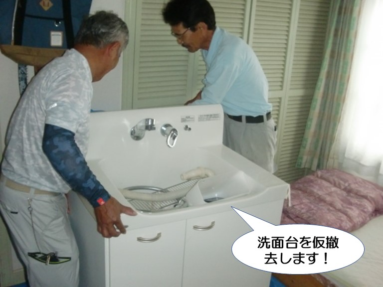 洗面台を仮撤去