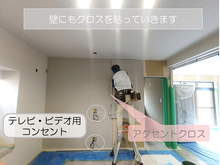 クロスの施工開始!アクセントクロスで空間に変化と落ち着きをプラス