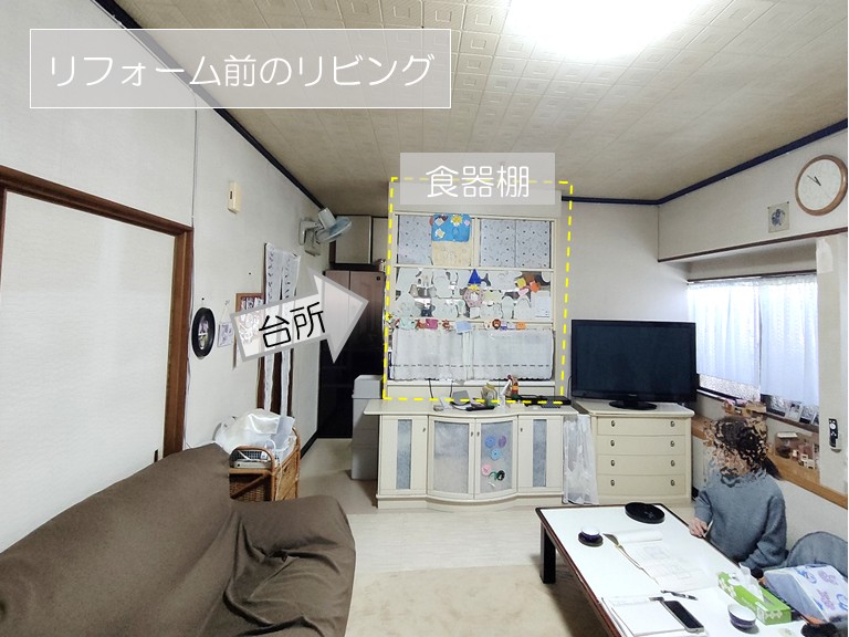 キッチン・カップボード設置➡泉南市M様邸で水屋を撤去して対面式キッチンへのリフォーム工事