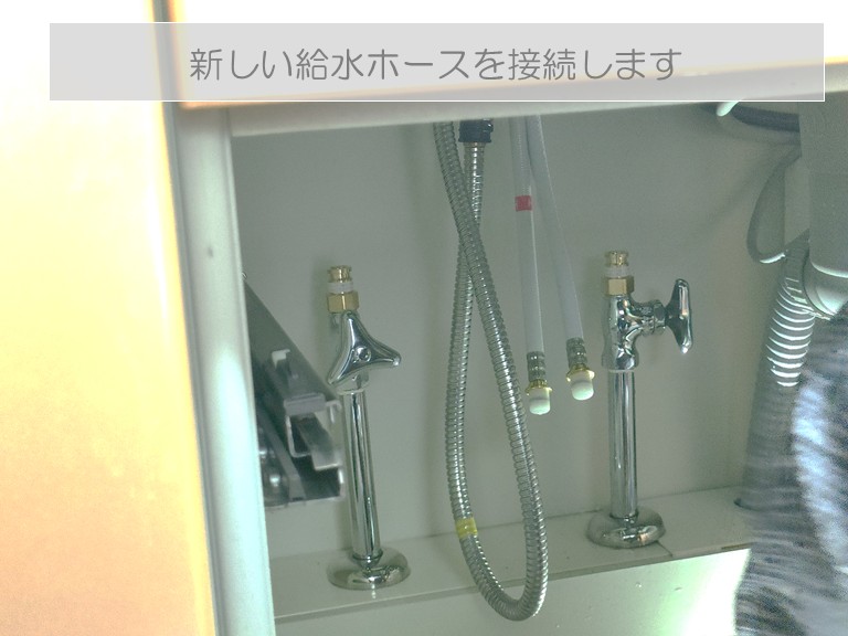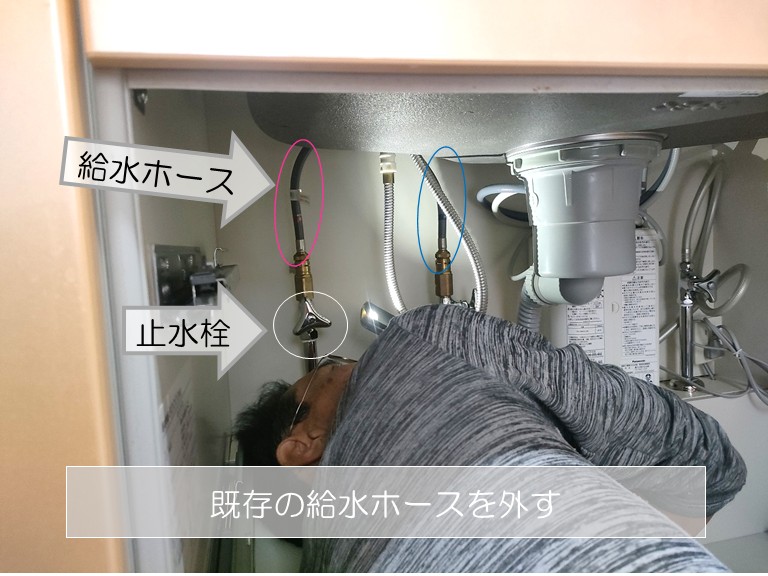 こちらは、既存の給水ホースを取り外した状態の写真です。