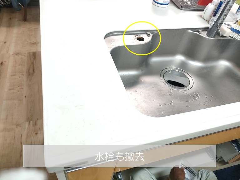既存水栓の取り外し作業の様子