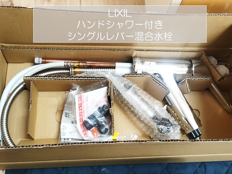 こちらが、今回新しく取り付けるリクシル製のハンドシャワー付き混合水栓です。