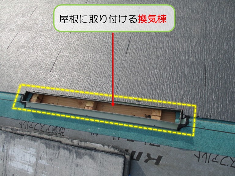 換気機能の上に板金を取り付けることで、換気棟を金属のカバーで雨から守ります。