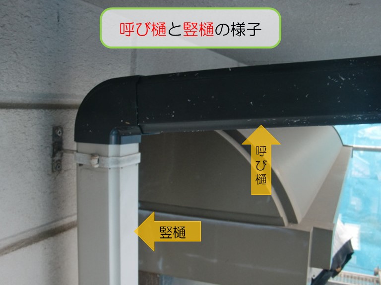 呼び樋・・・雨どい同士をつなげて、雨をスムーズに流す中継のパイプのこと。
