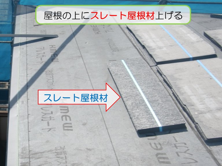 このままでは雨漏りが悪化する恐れがあるため、私たちは陸屋根の上にスレート屋根を新設する工事をご提案しました。