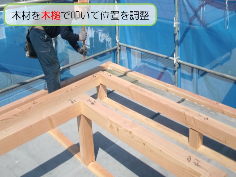 木槌は木材を傷つけることなく位置調整ができる工具です。