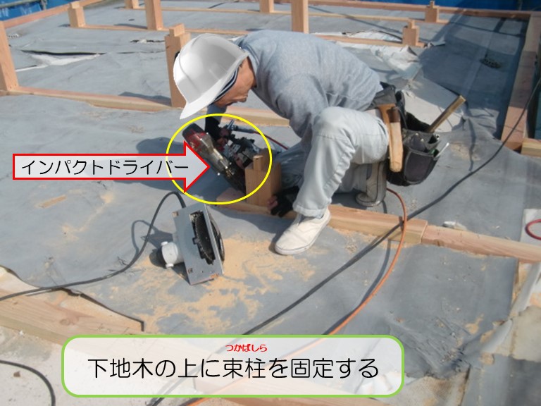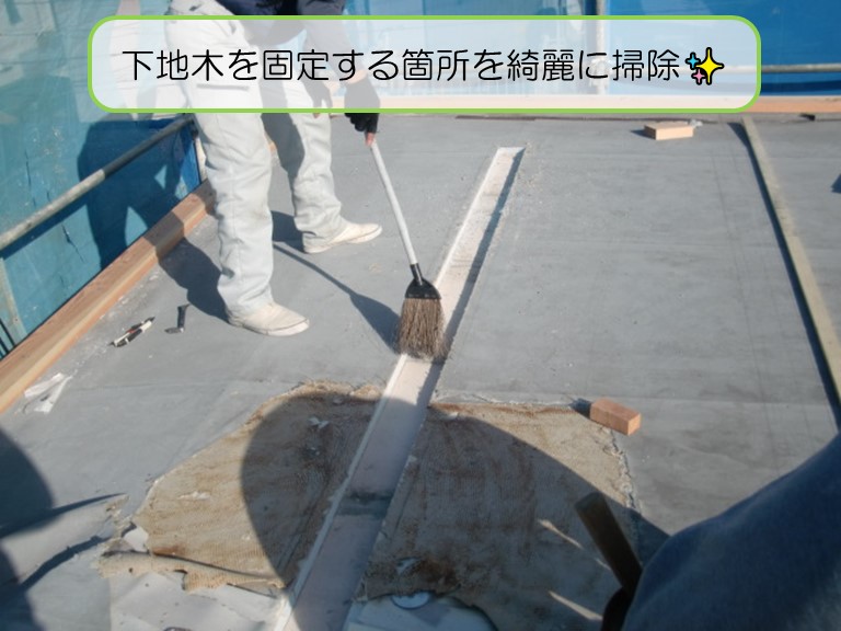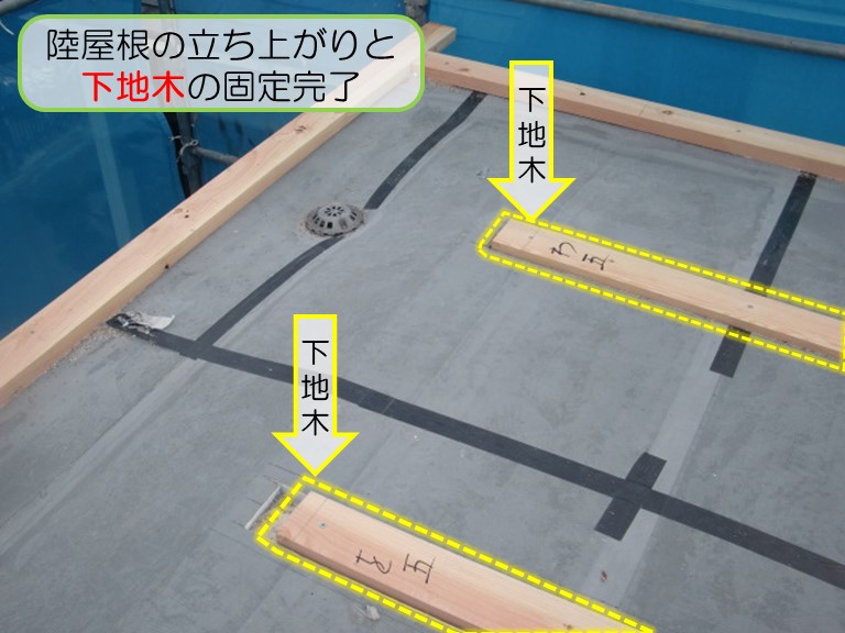 高石市S様邸の陸屋根の立ち上がり部分への木材取り付け