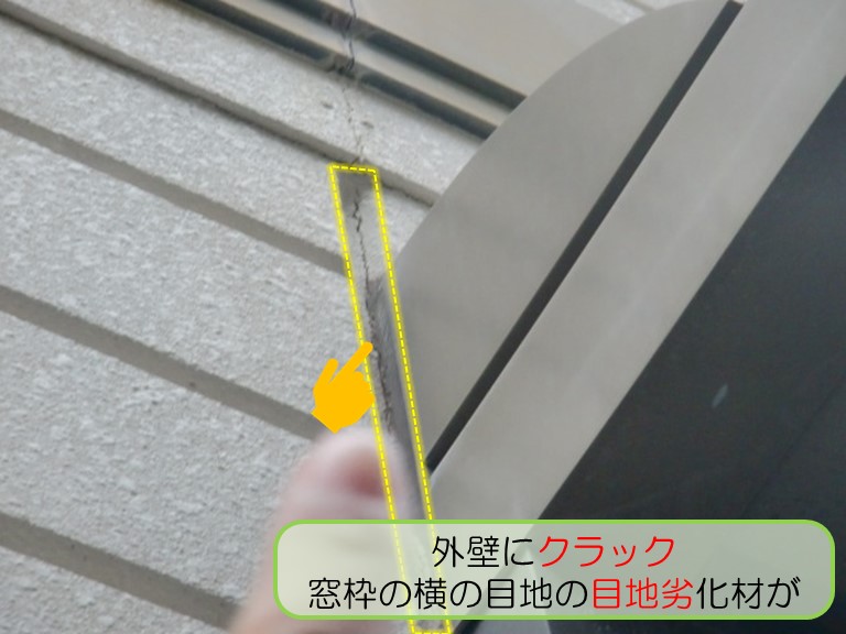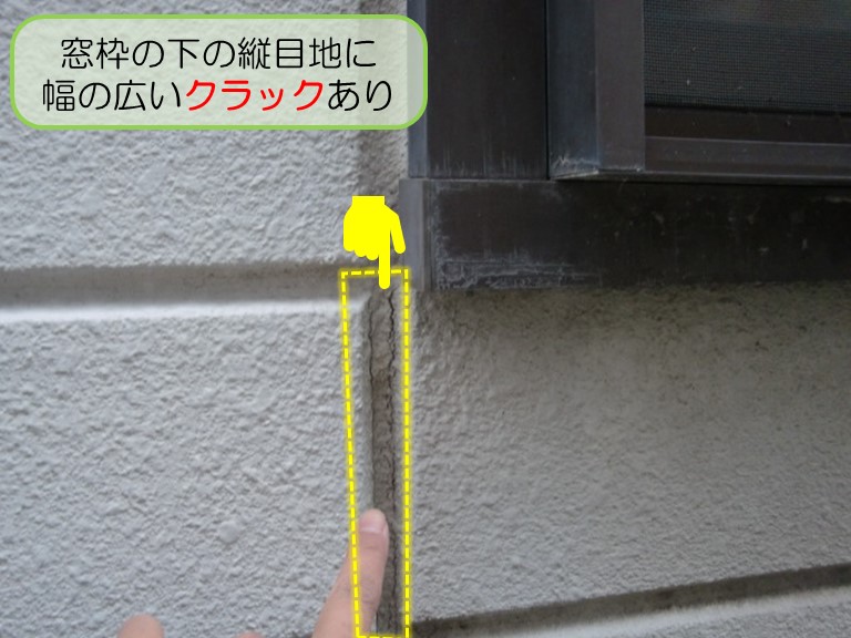 窓周辺は雨水がかかりやすく、クラックから内部への浸水リスクが高い箇所です。